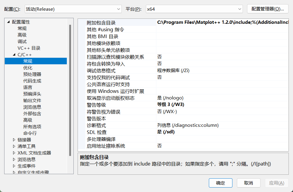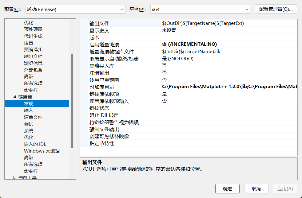 由于这部分已经有大佬写的很详细了这里就不再赘述了。主要安装主要有gnuplot下载与安装&Matplot++下载和vs的配置。推荐大佬写的详细安装步骤 Matplotplusplus绘图库的引用_晓程序员的博客-CSDN博客