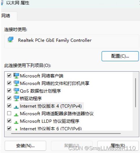 右击以太网,选择属性,并选择"TPC/IPv4"